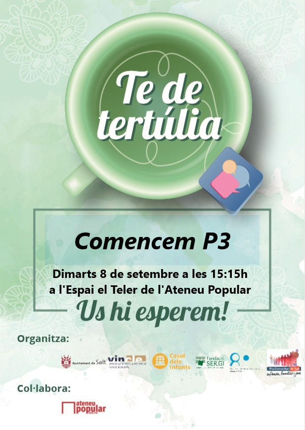 Per si teniu infants que comencin aquest curs P3, o coneixeu a algú que li pugui ser d'interès, us deixem el cartel del primer Té de Tertúlia del curs 2020-2021.